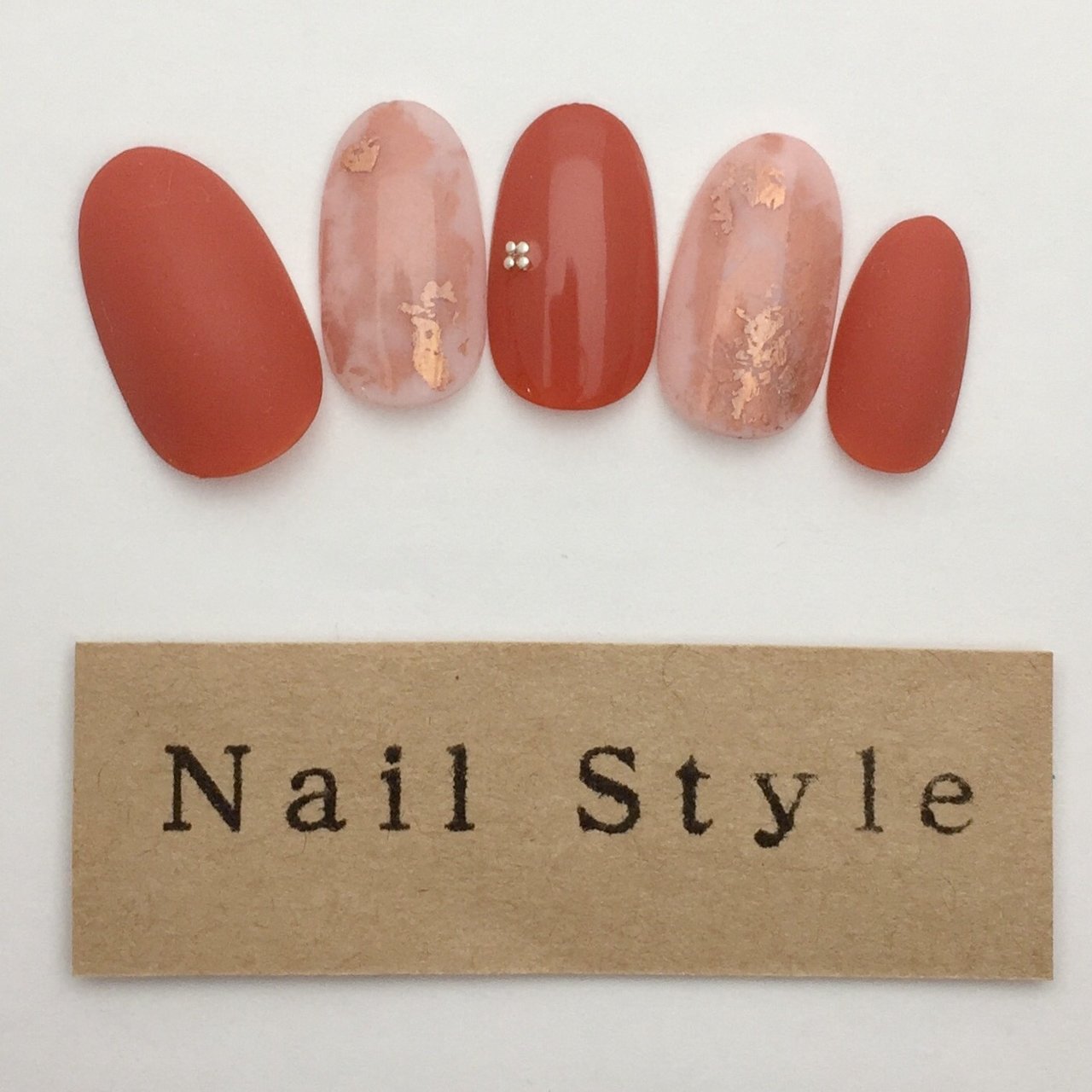 くすみカラーネイル オレンジ 定額コースデザイン 50 立花でネイルするならプライベートサロンのyui S Nail