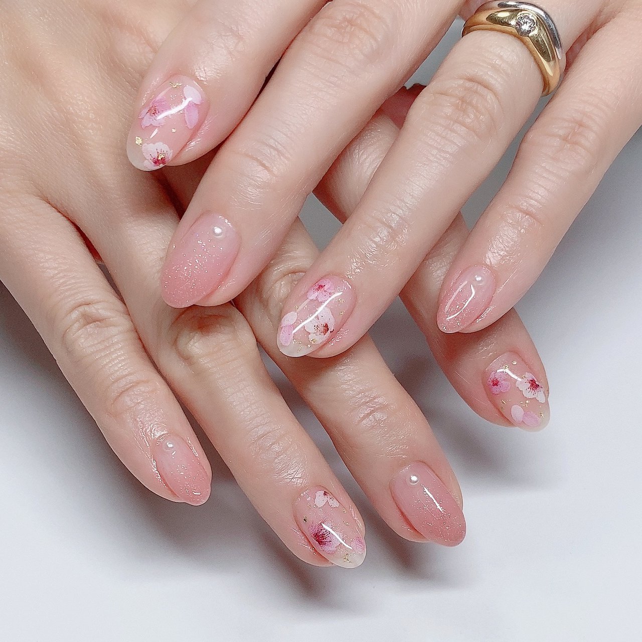 春 夏 グラデーション 押し花 ピンク Nailsalon Flowerのネイルデザイン No ネイルブック