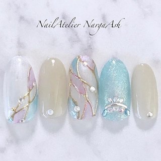キラキラシェルー ネイル ネイルデザイン 夏ネイル 夏ネイルデザイン クリアネイル 大理石ネイル 海 夏 シェルネイル ジェルネイル 個性派ネイル ニュアンスネイル ユニコーンネイル オシャレ ファッション 美爪 美甲 Nail Na ネイルデザイン クリア