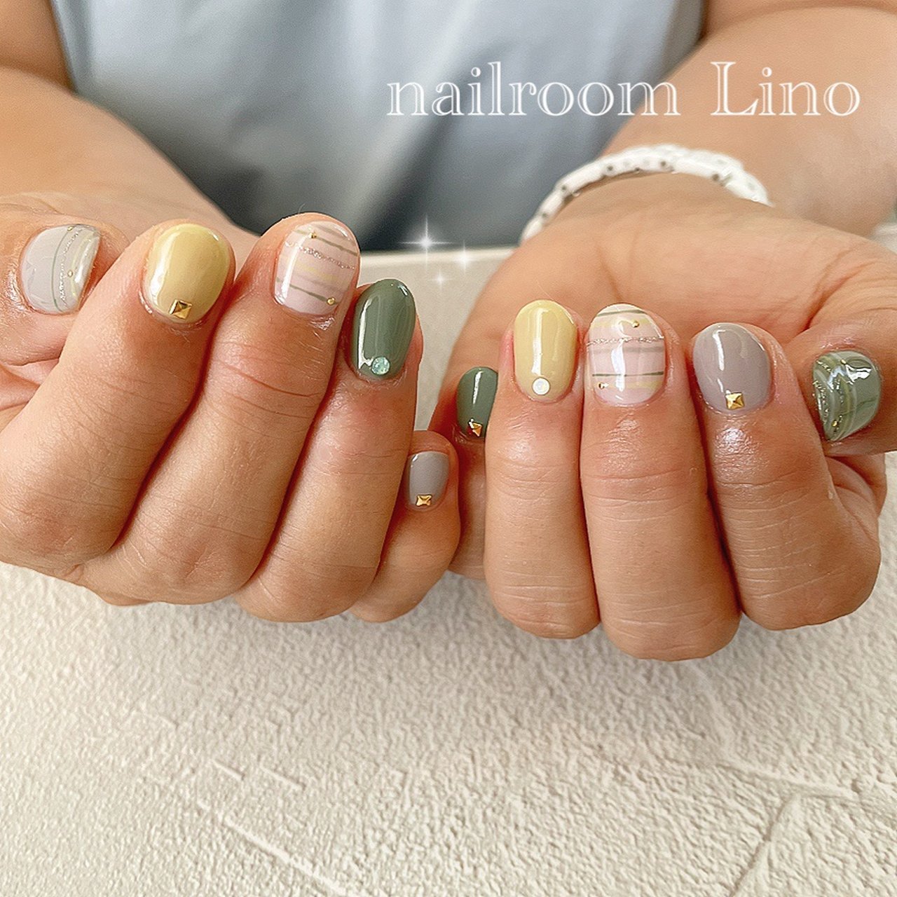 秋 ハンド ボーダー ショート イエロー Akiko のネイルデザイン No ネイルブック